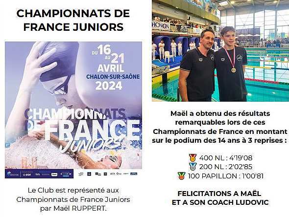 TROIS MEDAILLES ET UN TITRE POUR MAËL AUX CHAMPIONNATS DE FRANCE JUNIORS